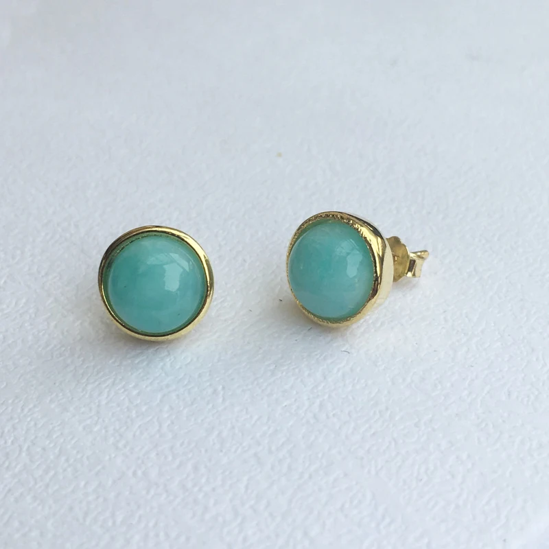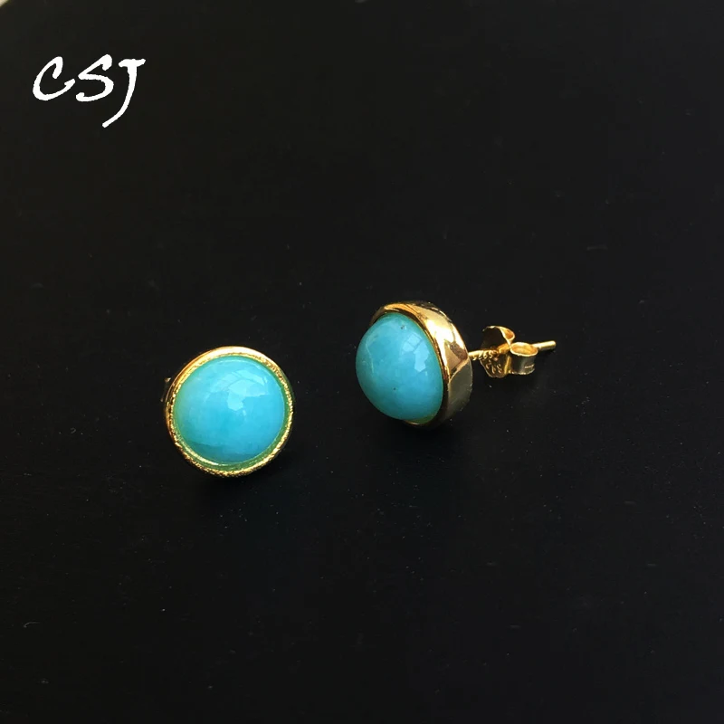 Best Quality CSJ Elegant Natural Amazonite Stud Earrings 925 Sterling Silver Fine Jewelry Women Femm Lady Weddin